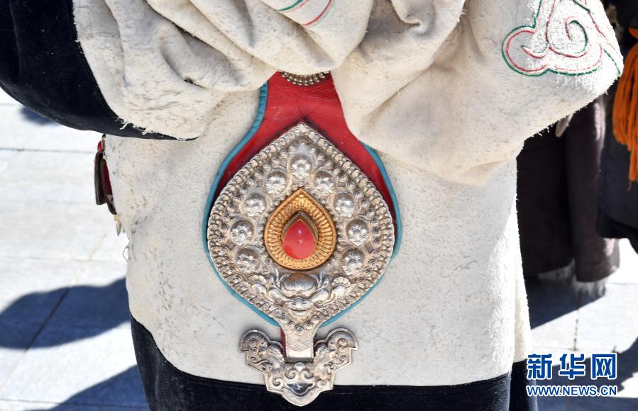 藏北當(dāng)雄縣一名牧區(qū)男子佩戴的銀飾(2月12日攝)。新華社記者 覺果 攝