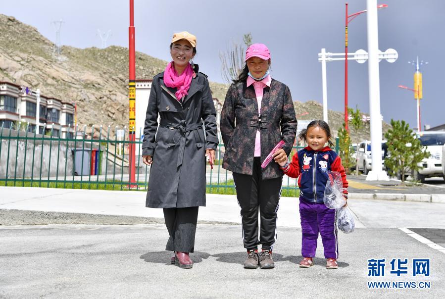 從雙湖縣搬遷而來(lái)的牧民行走在山南市貢嘎縣森布日村街頭(2020年7月29日攝)。新華社記者 張汝鋒 攝