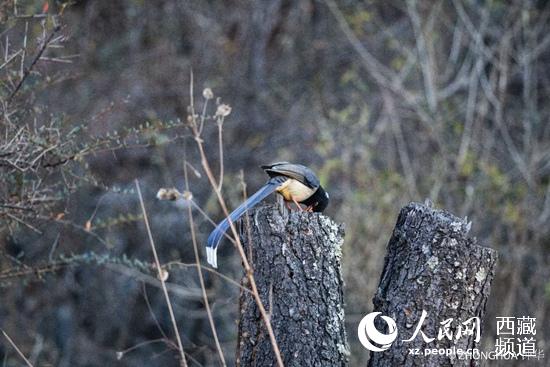 珠峰保護區(qū)內(nèi)的黃嘴藍鵲 北京林業(yè)大學學生鐘華 攝