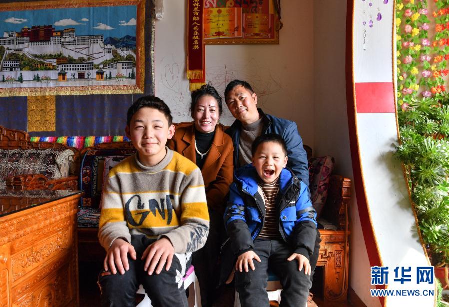 這是陳千(后排右)一家的合影(2月25日攝)。新華社記者 晉美多吉 攝