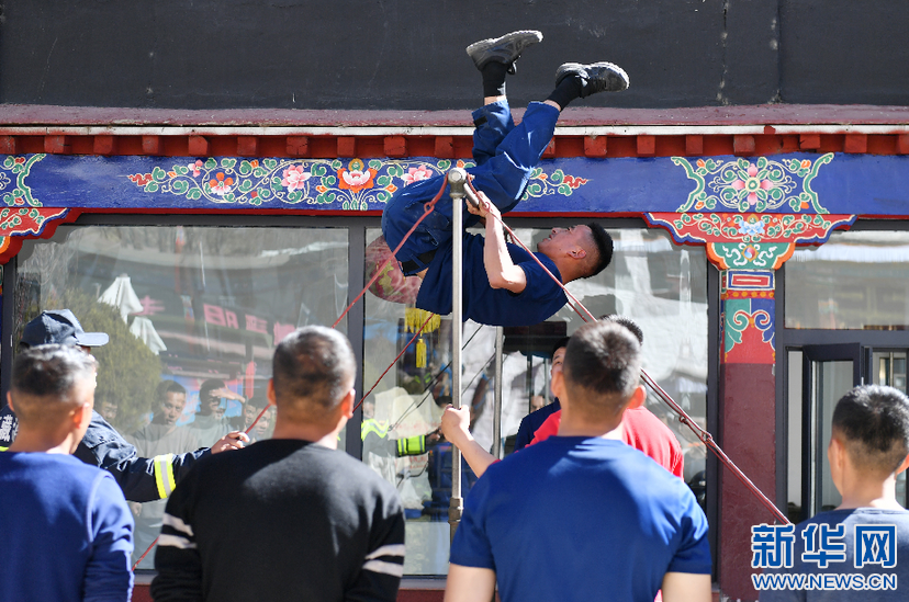 布達(dá)拉宮消防救援大隊(duì)隊(duì)員開(kāi)展例行體能測(cè)試(3月4日攝)。新華社記者 孫瑞博 攝