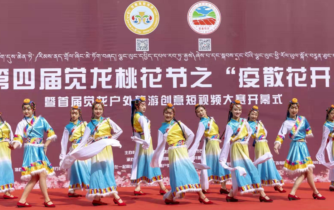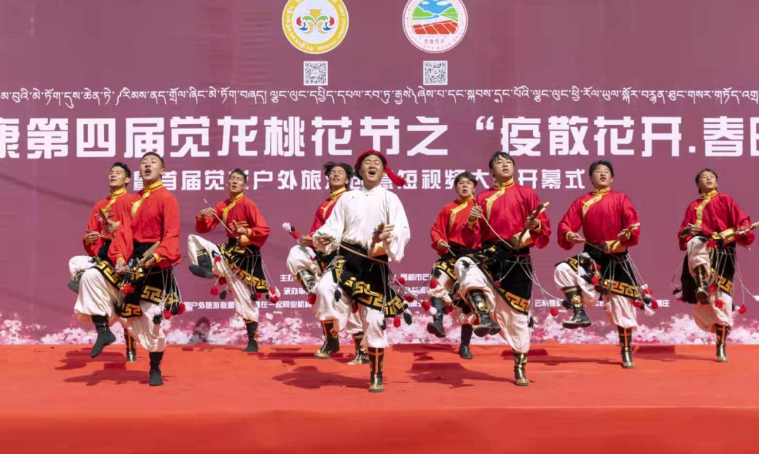 4月3日活動(dòng)正式開幕,開幕式上,昌都市人大常委會(huì)主任、黨組書記,芒康縣委書記齊應(yīng)海宣布活動(dòng)開幕,并為納西民族鄉(xiāng)覺龍村頒授了《全國(guó)鄉(xiāng)村旅游重點(diǎn)村》獎(jiǎng)牌。昌都市旅游發(fā)展局副局長(zhǎng)蔡慶,芒康縣委常委、常務(wù)副縣長(zhǎng)杜晨光出席開幕式并致辭。麗江藝術(shù)團(tuán)和芒康藝術(shù)團(tuán)帶來(lái)的歌舞《吉祥謠》《福滿昌都》《崗拉梅朵》等精彩紛呈的表演為在場(chǎng)觀眾帶來(lái)了一場(chǎng)歌舞盛宴。開幕式后,游客們循著山谷中遍野的桃花,漫步山野田間,記錄著每一個(gè)美麗的瞬間。出了覺龍溝,大家在扎古西大峽谷參觀了文成公主廟和崗達(dá)寺,傍晚在云曲莊園大家圍著篝火跳起了歡快的舞蹈。