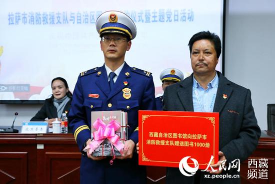 雙方還簽訂了共建協(xié)議,就圖書流動站建設(shè)、消防志愿服務(wù)隊(duì)建設(shè)和數(shù)字化電子圖書服務(wù)等達(dá)成一致。旦增卓瑪代表西藏自治區(qū)圖書館向拉薩市消防救援支隊(duì)贈送書籍1000冊。