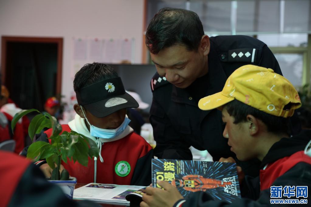 亞東出入境邊防檢查站圖書室對駐地中學(xué)學(xué)生開放,民警為學(xué)生講解書本知識(張雨強攝,新華社發(fā))