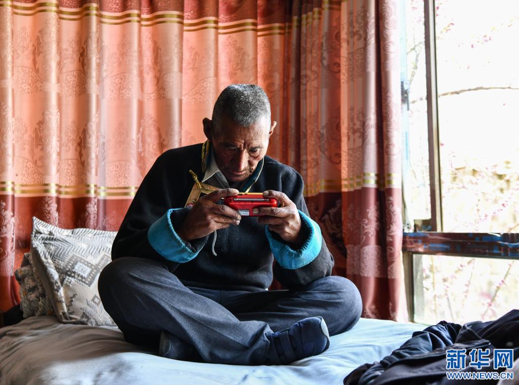 拉布老人在家里收聽(tīng)新聞(4月25日攝)。新華社記者 晉美多吉 攝