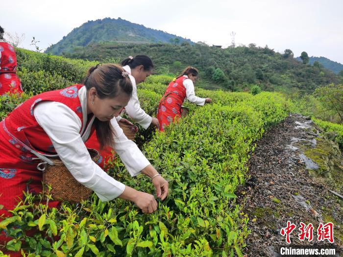 眼下正值春茶采摘最忙碌的時(shí)節(jié),身著傳統(tǒng)民族服飾的茶農(nóng)穿梭在望不到邊際的茶園里,他們動作嫻熟地采下新鮮的春茶,并放進(jìn)腰間的竹簍中。在這里種植品種有梅占、福鼎大白、黃觀音、鳳凰單叢、儲葉齊等。