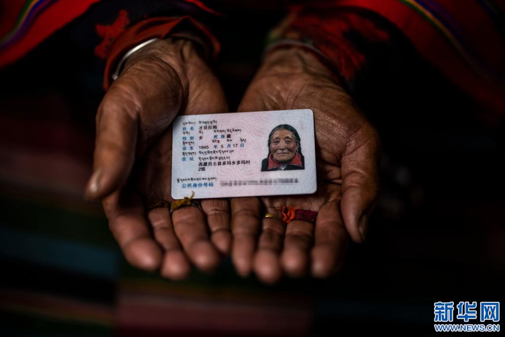 才旦拉姆老人的身份證(4月27日攝)。新華社 貢覺(jué)群培 攝