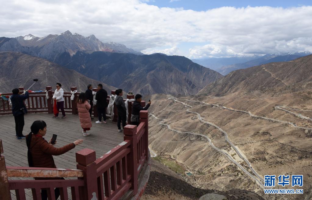 游客在觀景平臺(tái)眺望壯觀的怒江72道拐(5月3日攝)。新華社記者 陳?ài)?攝