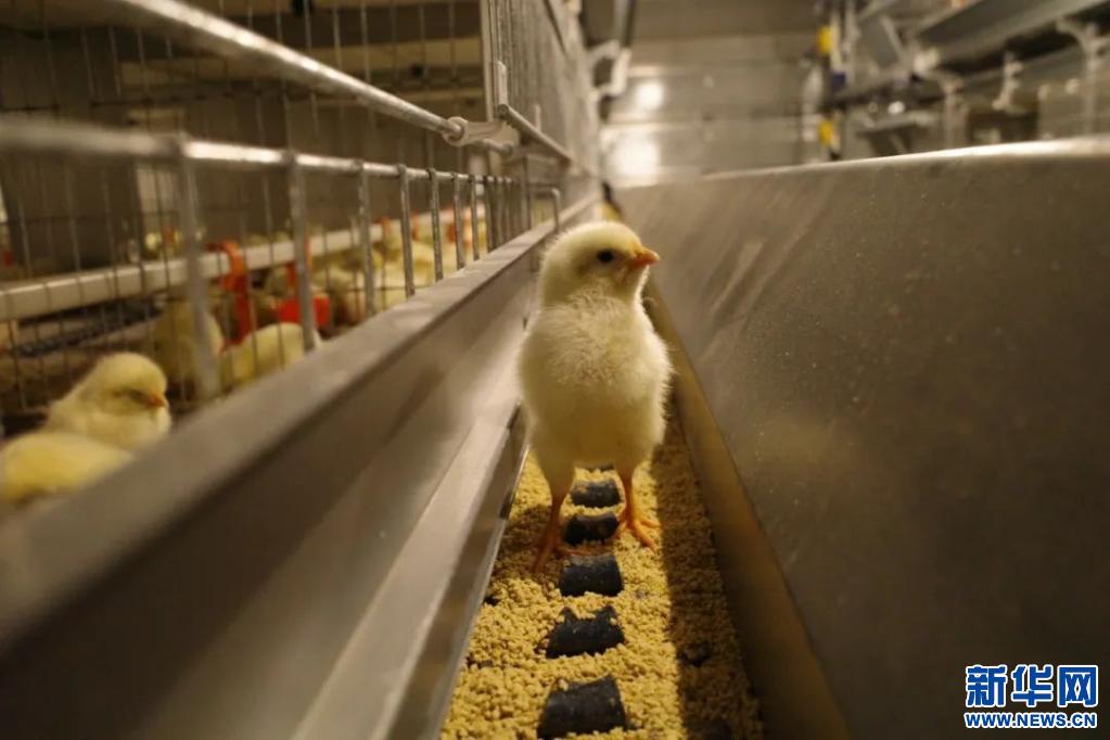 養(yǎng)殖員正在檢查雞苗。(新華社發(fā))