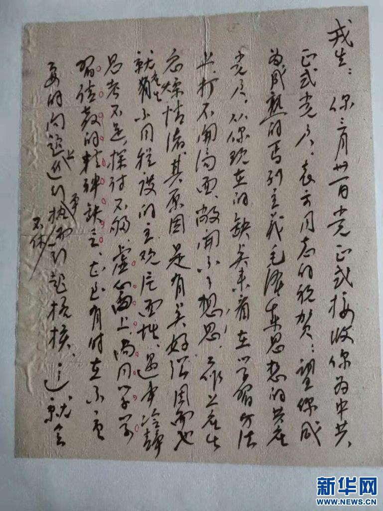 “戎生……我一生,只知為黨為人民,不知為私,你媽媽也是一樣。生出你們兄弟妹以來,均寄托出去了,不能照顧你們周到,現(xiàn)在你們均長成人了,也很努力求進(jìn)步,這就很好,對我在邊疆工作也是很大的鼓勵(lì)之一?!?/p>