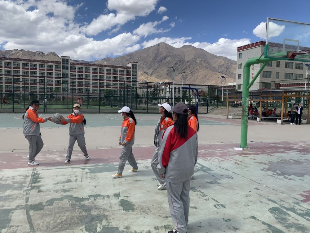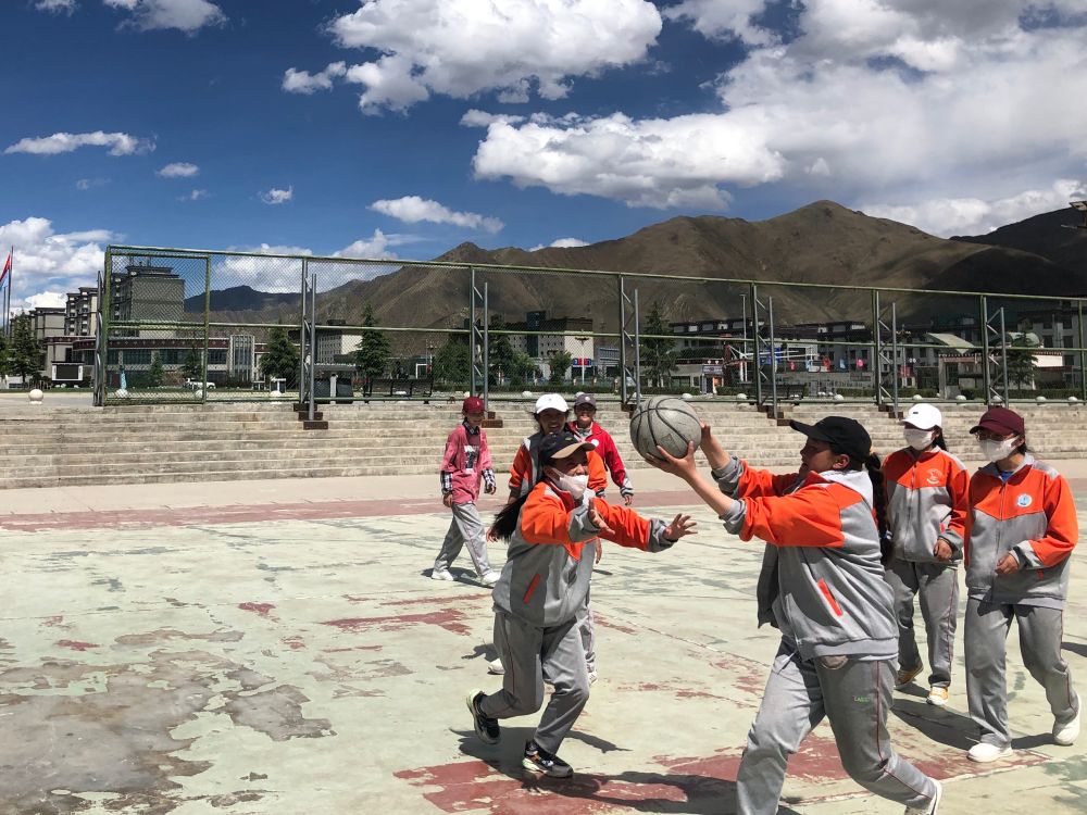 6月1日,西藏自治區(qū)拉薩市,拉薩那曲第二高級中學(xué)女學(xué)生們在操場打籃球。新華社記者齊菲攝