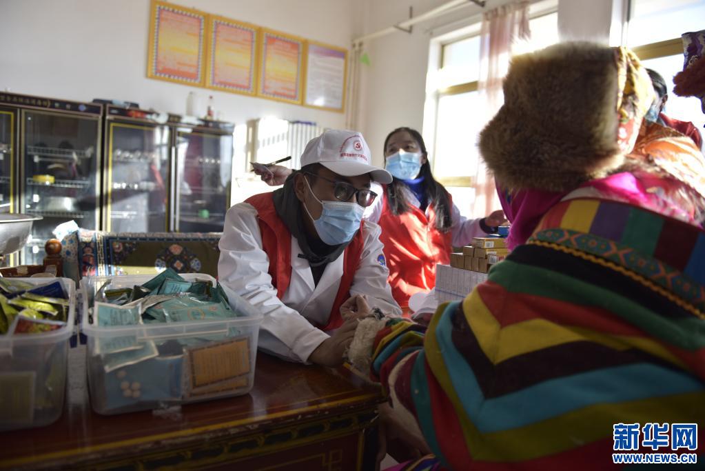 西藏尼瑪縣新時代文明實(shí)踐中心志愿者在尼瑪縣五保集中供養(yǎng)服務(wù)中心進(jìn)行義診(2021年2月3日攝)。新華社記者 格桑朗杰 攝