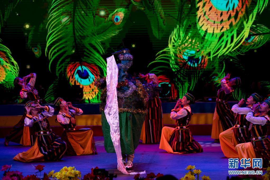 6月12日,在西藏拉薩市的自治區(qū)群藝館,演員表演《孔雀舞》。新華社記者 孫瑞博 攝