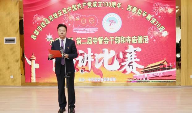7月2日,昌都市委統(tǒng)戰(zhàn)部以慶祝中國共產(chǎn)黨成立100周年、西藏和平解放70周年“為黨贊頌”為主題,舉辦全市第二屆寺管會干部和僧尼演講比賽,市委常委、統(tǒng)戰(zhàn)部長,市政協(xié)黨組副書記澤仁俊美出席,市委宗教工作領導小組成員單位負責人和強巴林寺、卡若區(qū)寺管會干部代表、僧尼代表觀看了比賽。市委組織部、市委宣傳部、市委統(tǒng)戰(zhàn)部、市民委、市文化局、市宗教局等單位負責人擔任評委。