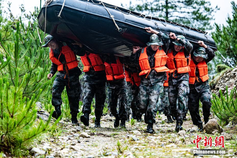 圖為官兵正在抗舟進(jìn)行快速機(jī)動。王述東 攝