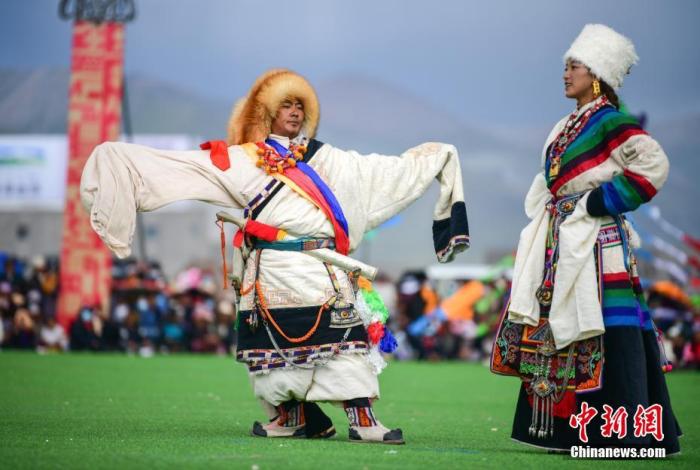 資料圖為西藏自治區(qū)拉薩市當(dāng)雄縣賽馬節(jié)上的藏族傳統(tǒng)服飾表演。中新社記者 貢嘎來松 攝