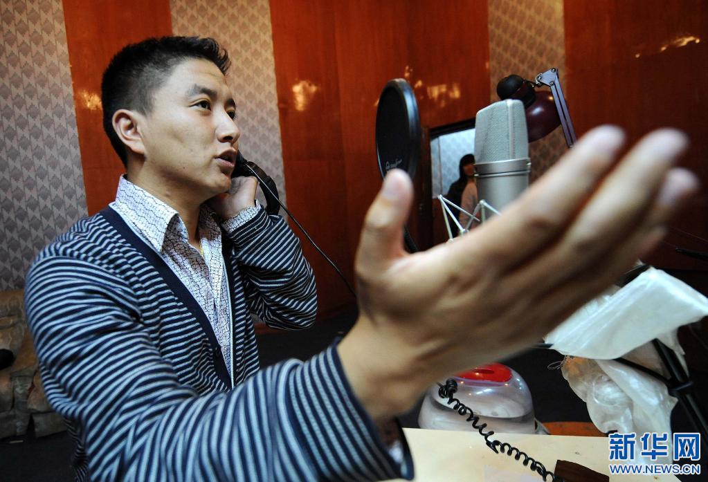 西藏電視臺(tái)藏語(yǔ)配音員在給電視劇配音(2009年9月29日)。新華社記者 覺(jué)果 攝