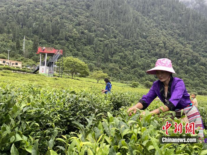 茶產(chǎn)業(yè)還給當(dāng)?shù)厝罕娫黾恿耸杖?。一個(gè)正在采茶的藏族姑娘告訴媒體團(tuán),采來(lái)的茶葉論斤計(jì)價(jià),如果采到最尖端的小嫩葉,每斤可換回150元。