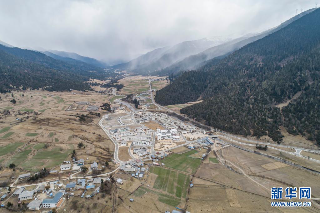 這是魯朗國(guó)際旅游小鎮(zhèn)(4月2日攝,無人機(jī)照片)。新華社記者 孫非 攝