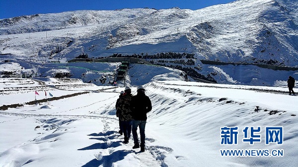 長江設(shè)計(jì)團(tuán)隊(duì)在海拔4300米雪域高原上開展勘測工作。新華網(wǎng)發(fā)
