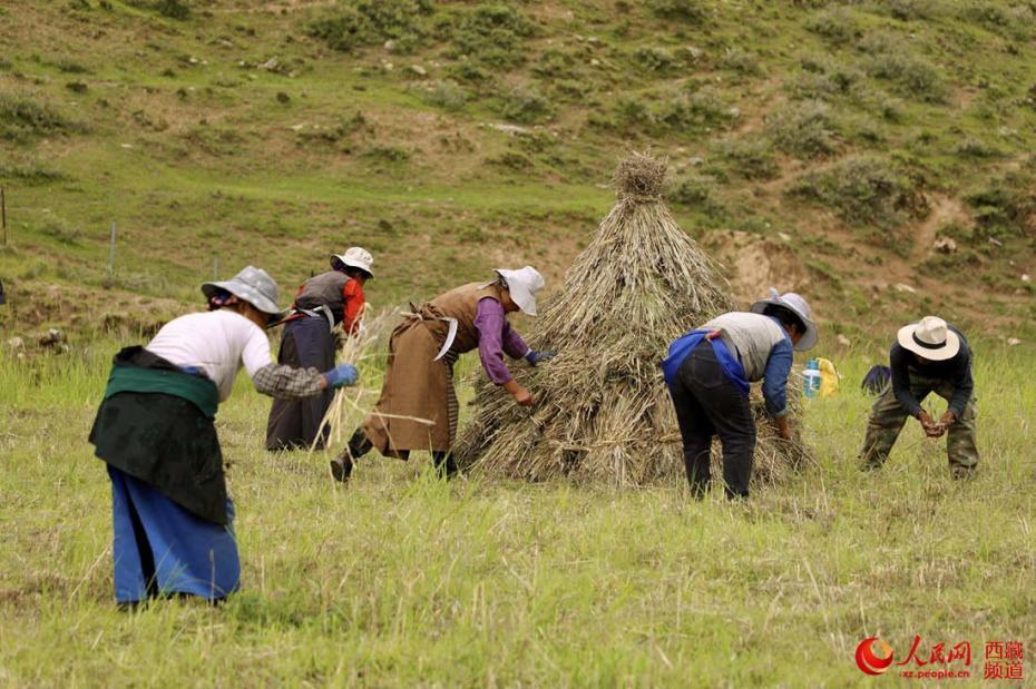 互幫互助忙收割。人民網(wǎng) 次仁羅布攝