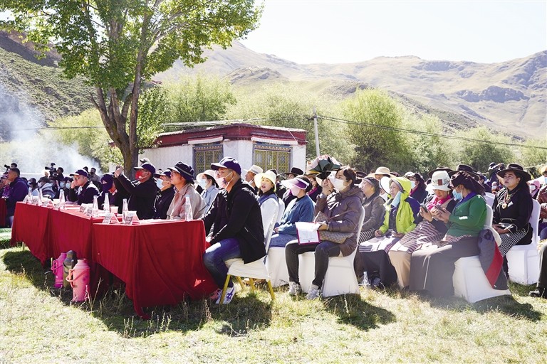啟動儀式結(jié)束后,還舉辦了第六屆覺木隆派藏戲文化旅游節(jié),邀請堆龍德慶區(qū)10支覺木隆藏戲表演隊表演特色劇目并為他們授牌。堆龍德慶區(qū)委常委、宣傳部部長楊麗表示,本屆藏戲文化旅游節(jié),廣發(fā)“藏戲達(dá)人召集令”,邀請各派系、各唱腔達(dá)人表演特色劇目選段、共話藏戲,就是希望通過共建文化陣地、共享文化資源、共辦文化活動的形式,凝聚合力,充分彰顯藏戲文化魅力,弘揚優(yōu)秀傳統(tǒng)民族文化,保護和傳承藏戲文化遺產(chǎn),推動藏戲文化深度發(fā)展。“很榮幸能參加此次活動,那嘎藏戲團于1978年成立,那年我13歲,藏戲團剛成立我就加入了,因為我十分喜歡藏戲,希望自己能將這種傳統(tǒng)藝術(shù)傳承下去。”今年56歲的安多說。