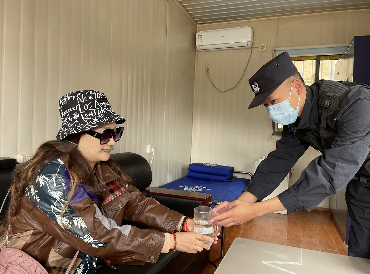 檢查站民警除了檢查出入邊境管理區(qū)人員和車輛以外,還設(shè)置了綠色便民服務(wù)區(qū),專門(mén)為長(zhǎng)途駕駛的游客提供飲用熱水和一些應(yīng)對(duì)高原反應(yīng)的藥品,以及為有吸氧需求的游客提供便攜式制氧機(jī)。據(jù)不完全統(tǒng)計(jì),自上點(diǎn)開(kāi)展工作兩年以來(lái),曲桑邊境檢查站共計(jì)為游客提供物資藥品幫助240余人次,幫助救援被困游客50余人,獲得了過(guò)往群眾游客的一致好評(píng)。