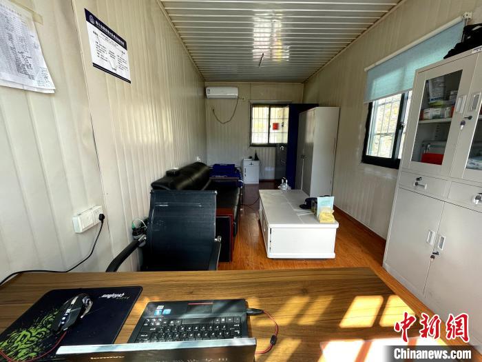 “最開始,我們是住在旁邊那個(gè)鐵皮房子里,晚上睡覺時(shí)還漏風(fēng),取暖基本靠‘抖’,睡在被窩里縮成一團(tuán),直到睡熱了之后才能把身子伸直。在這里執(zhí)勤就沒有脫下過毛衣,哪怕是在有太陽的白天,換衣服要等到回到駐地?fù)Q勤以后。后來支隊(duì)為我們修建了這個(gè)過渡性的移動(dòng)方艙,空調(diào)、烤火爐、熱水器、室內(nèi)廁所、冰箱、沙發(fā)等設(shè)備都有了,只要把門關(guān)好了,取暖器和空調(diào)一開,室內(nèi)就像家里那么暖和?!?。周建馳繼續(xù)補(bǔ)充到。