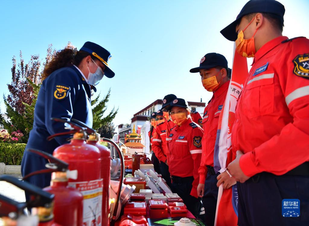 11月4日,工作人員向青年志愿救援隊(duì)介紹消防設(shè)備。新華社記者 晉美多吉 攝