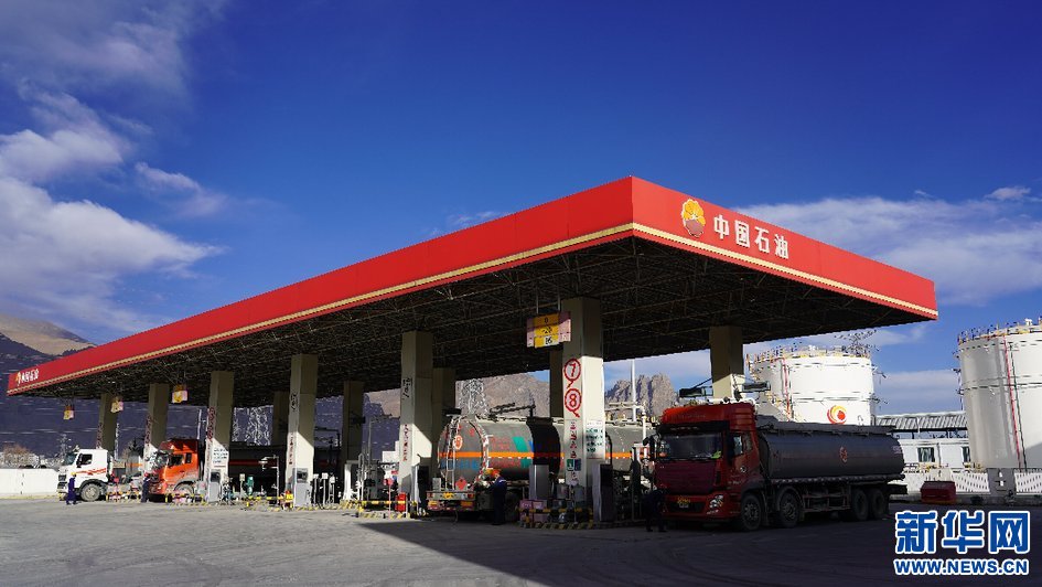圖為油庫發(fā)油臺工作人員在交接工作(12月3日攝)。新華網(wǎng) 貢桑央吉(實習(xí)生) 攝
