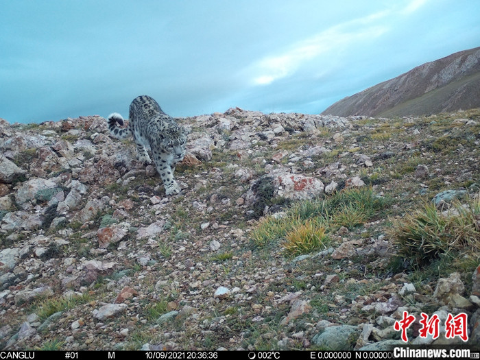 資料圖為2021年8月19日在西藏自治區(qū)那曲市境內(nèi)由紅外相機拍攝到的雪豹活動影像。 中新社發(fā) 山水自然保護中心 供圖