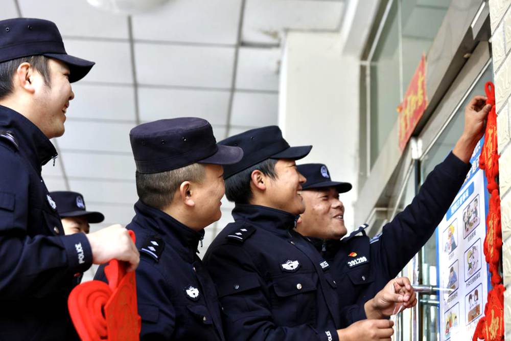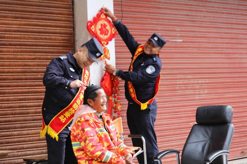 從警20年的老民警掛福字。索朗次仁攝