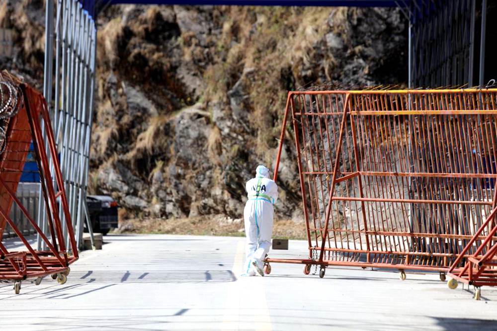 執(zhí)勤點民警正在打開友誼橋阻攔門。索朗次仁攝