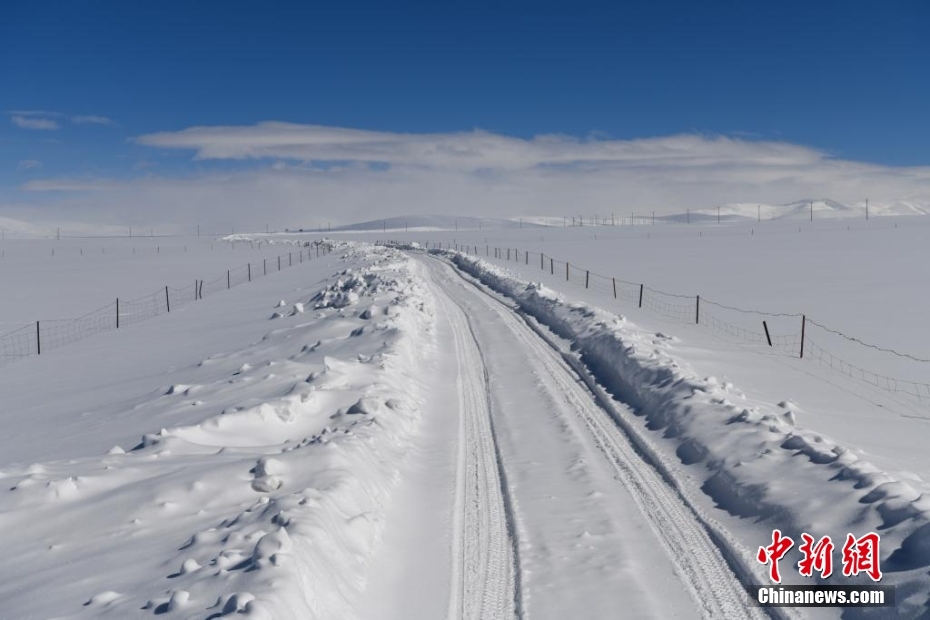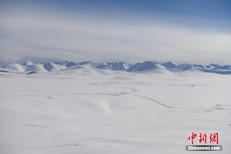 納木錯是西藏三大“圣湖”之一,近日迎來了降雪。藍(lán)色的冰湖與廣闊的牧場都被茫茫白雪覆蓋。遠(yuǎn)處連綿的山峰像極了奶油冰琪凌一般。牧場的欄桿,點綴出了草原的輪廓。貢嘎來松 攝