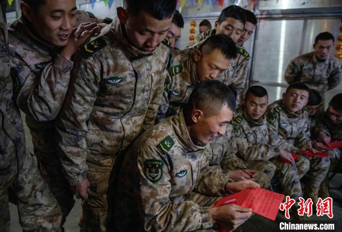 聯(lián)歡的尾聲指導(dǎo)員夏邦國(guó)拿著最后的彩袋走到臺(tái)前,把晚會(huì)推向高潮,“兄弟們,這還有一大袋紅包,里面裝著的可是最珍貴的祝?!?。官兵們用抽盲盒的形式拆開新年的“紅包”。中士趙路寬抽到一個(gè)最鼓的,打開是滿滿的糖果;下士吳兵拆開的是一個(gè)帶有小機(jī)關(guān)的新年賀卡;下士鄧云川拆到一封遠(yuǎn)方的匿名信,“雖不曾相見與相識(shí),但知道是你們?cè)谀瑘?jiān)守付出,守衛(wèi)著祖國(guó)的雪域邊防”。伴隨著他磕絆的普通話,連隊(duì)官兵漸漸安靜下來(lái)?!斑呹P(guān)有我,請(qǐng)祖國(guó)和人民放心”,簡(jiǎn)易投影的大屏上開始播放著官兵們一年多來(lái)頂風(fēng)冒雪,戰(zhàn)天斗地的光影片段,在這大山里的多少的苦累酸甜,都已經(jīng)鐫刻在茫茫雪域。