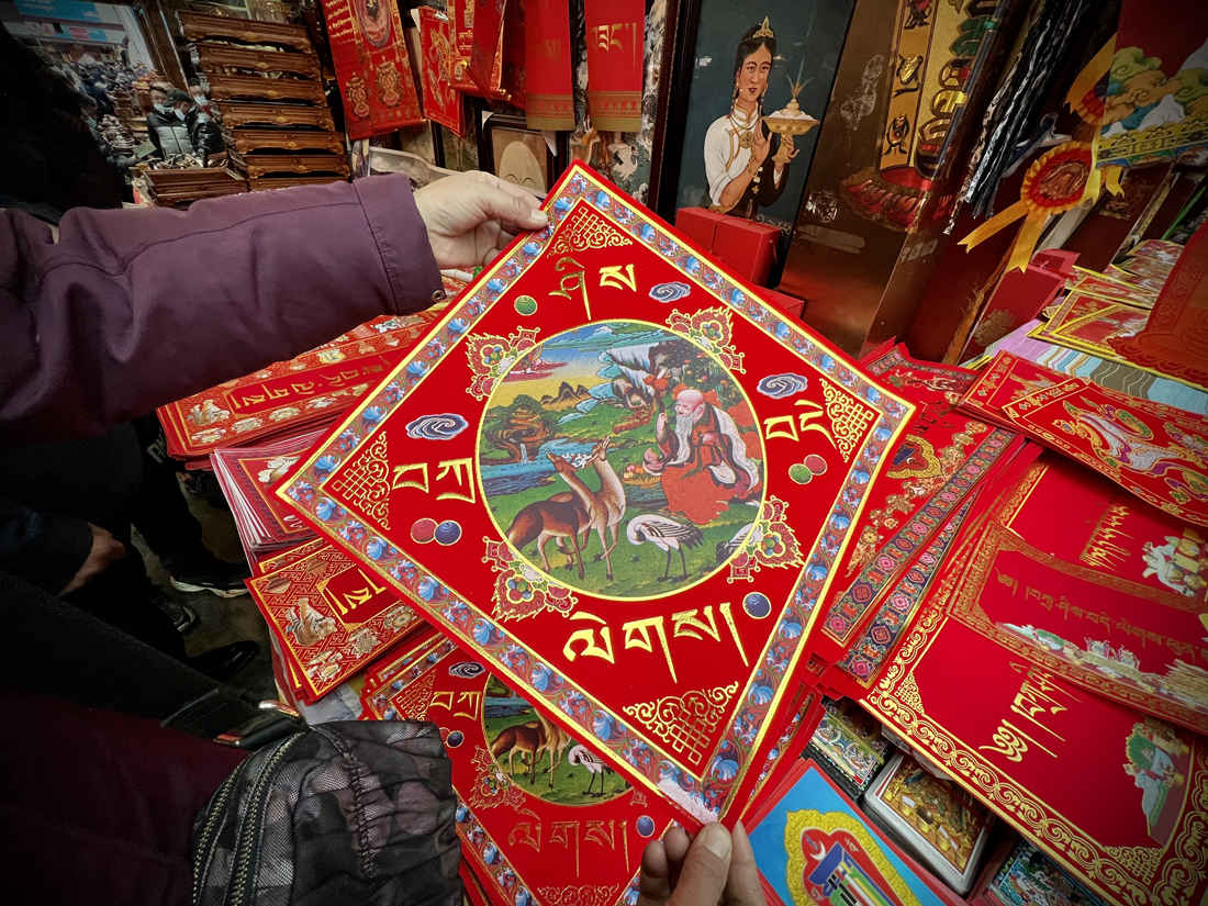 大紅的春聯(lián)、精致的切瑪盒、象征吉祥的羊頭、五彩的羅薩梅朵……藏歷新年上應(yīng)景的物件被一一擺上了街頭。雖然春節(jié)剛過去,但古城拉薩的大街小巷里年味仍然濃厚,再過不久,2022年3月3日,雪域高原將迎來(lái)藏歷水虎新年。