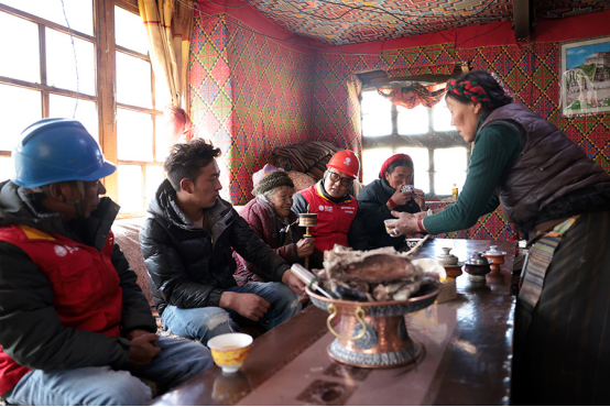 帳篷里大家圍坐在一起,喝著熱氣騰騰的酥油茶,熱情的讓卓不停地向服務(wù)隊(duì)隊(duì)員獻(xiàn)上脆脆的風(fēng)干肉,有說(shuō)有笑。讓卓85歲的老奶奶瑪姆也湊起熱鬧聊家常,即使聽(tīng)力有些下降,但聊到用電給生活帶來(lái)的改變時(shí),老奶奶笑著用流利的藏語(yǔ)說(shuō)“黨的政策好??!”
