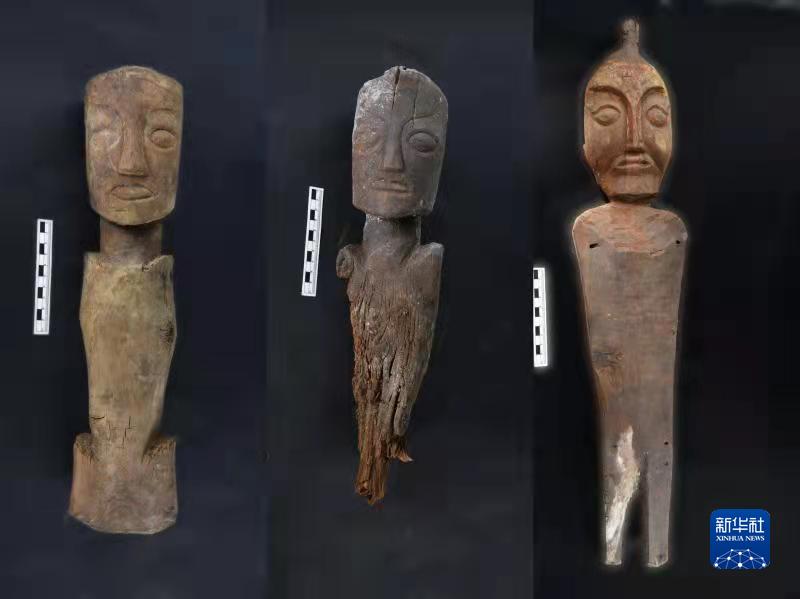 桑達(dá)隆果墓地出土的木俑(資料照片)。新華社發(fā)