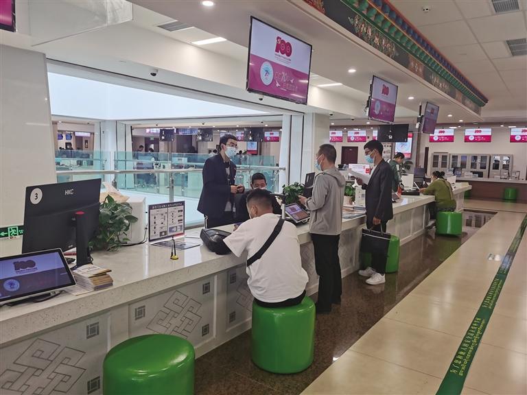 市民在拉薩三級(jí)政務(wù)服務(wù)大廳辦理相關(guān)業(yè)務(wù)。
