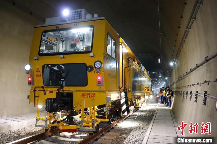 圖為鐵路大型養(yǎng)路機(jī)械搗固車在西藏拉林鐵路隧道內(nèi)。祁國(guó)慶 攝