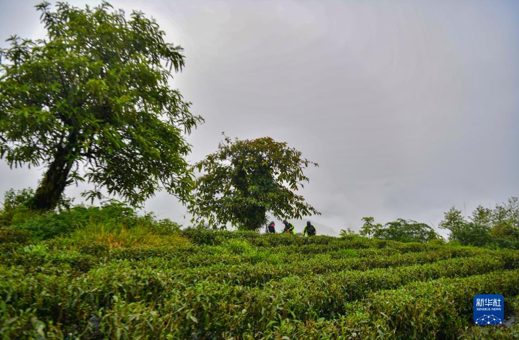 門巴族姑娘貢桑拉姆正在云霧繚繞的茶園里采摘茶青