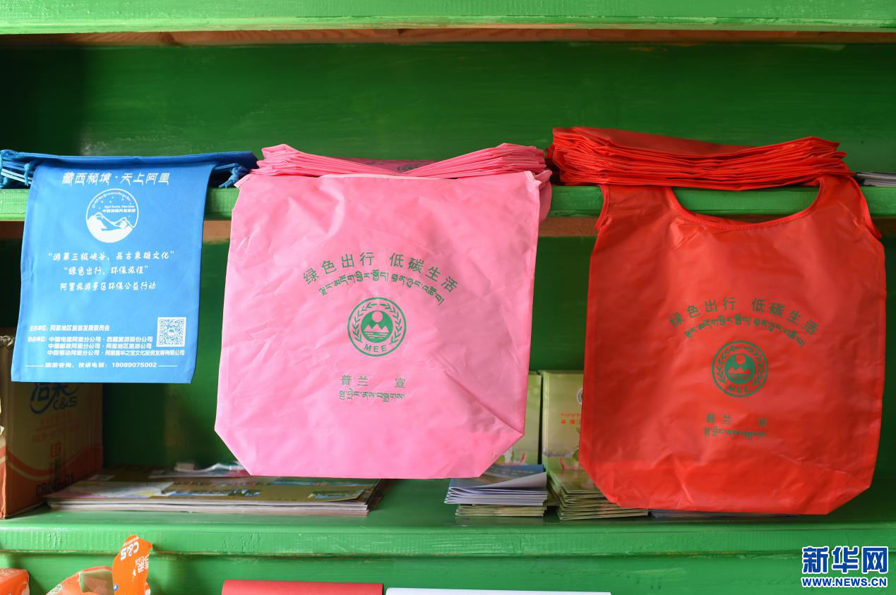 圖為“垃圾銀行”柜臺上擺放的環(huán)保袋(4月20日攝)。新華網(wǎng) 旦增努布攝