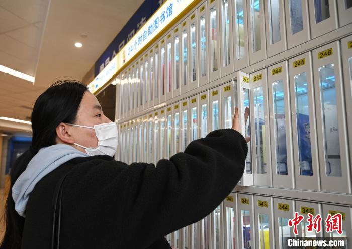 圖為市民體驗(yàn)智能借書。趙朗 攝