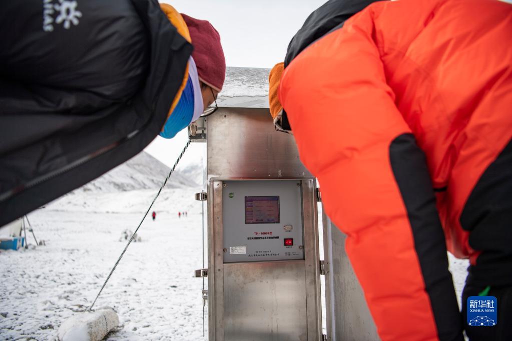 在珠峰登山大本營,科研人員在采集大氣微生物(4月30日攝)。新華社記者 孫非 攝