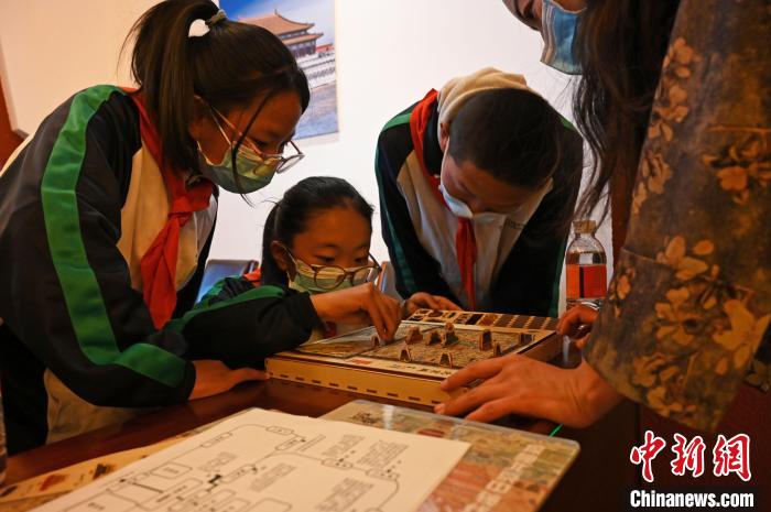 圖為學生體驗北京古城池拼圖。趙朗 攝