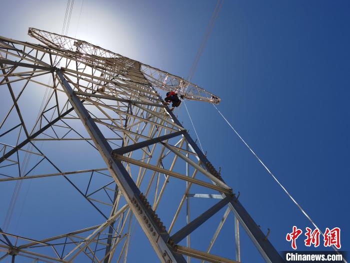 圖為國(guó)網(wǎng)青海超高壓公司輸電運(yùn)檢人員在海拔4700米以上的高原檢修“電力天路”。國(guó)網(wǎng)青海超高壓公司供圖