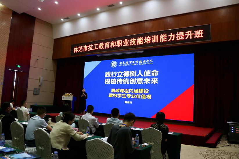 圖為廣東機(jī)電職業(yè)技術(shù)學(xué)院鄭偉光校長(zhǎng)為林芝市技工教育和職業(yè)技能培訓(xùn)能力提升班學(xué)員授課。