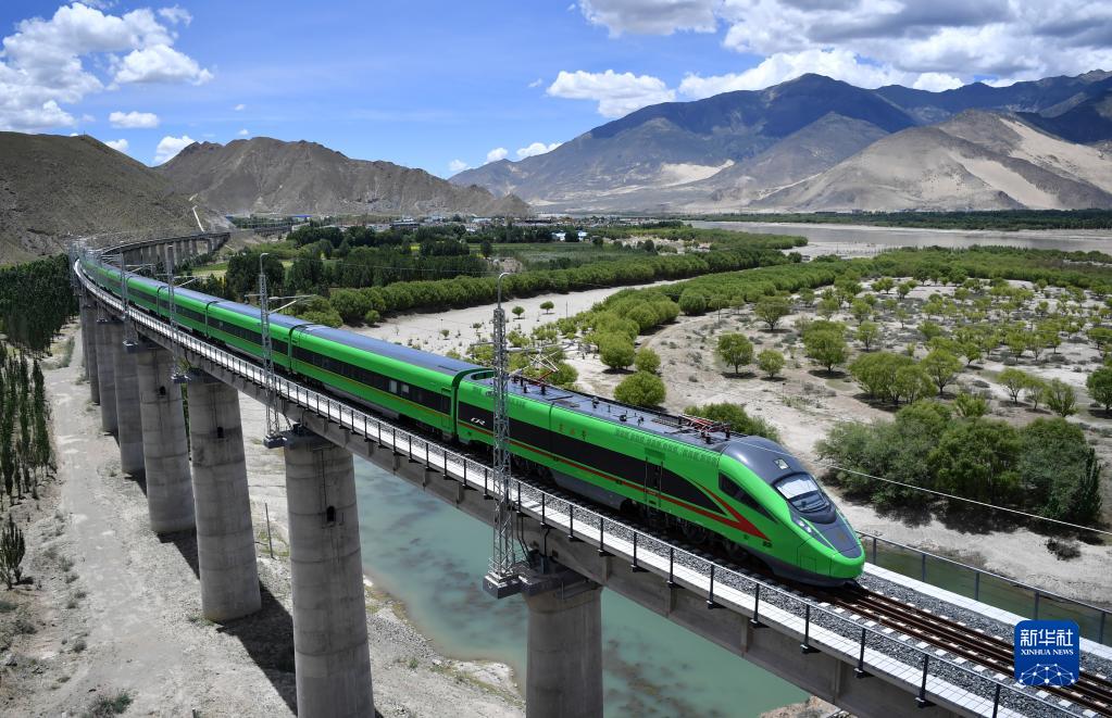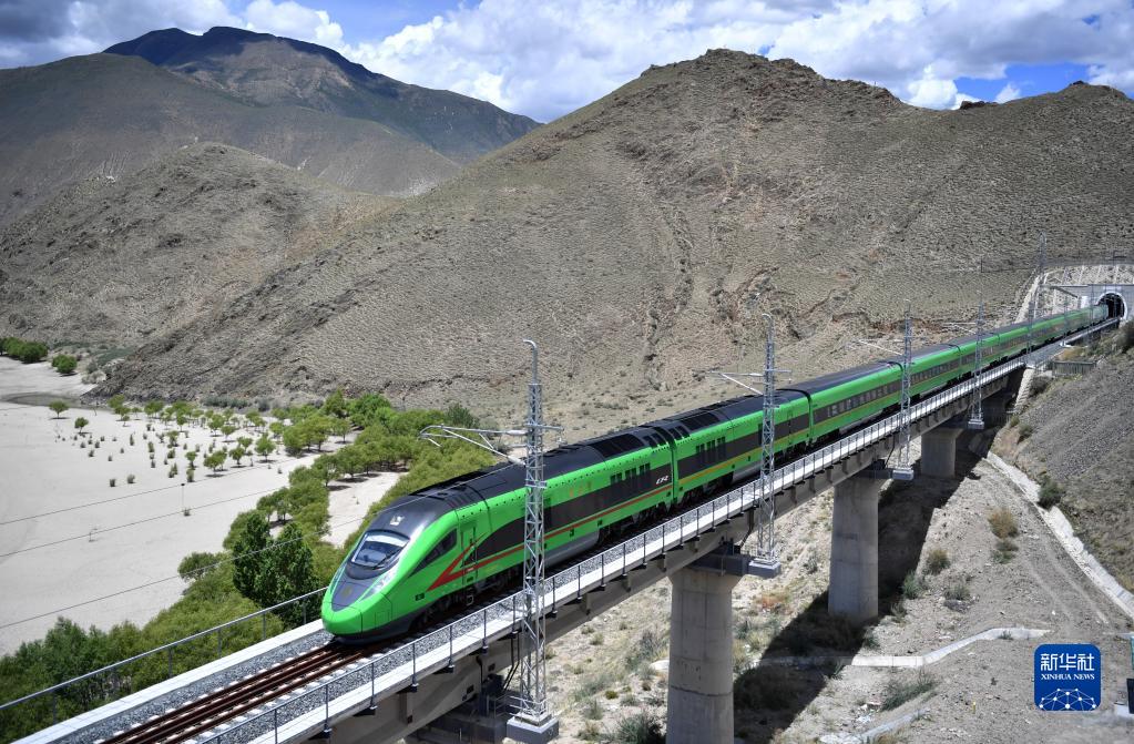6月22日,復(fù)興號列車行駛在西藏山南境內(nèi)。新華社記者 覺果 攝