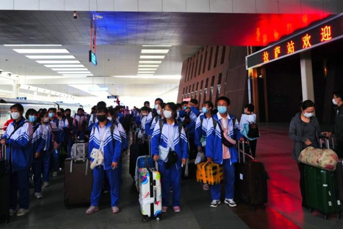 2020年7月,遼寧省遼陽市第一中學西藏班的126名藏族學生順利完成初中課程,返回西藏家鄉(xiāng)參加內地西藏班中考,準備開始新的學習和生活。 中新社記者 張偉 攝