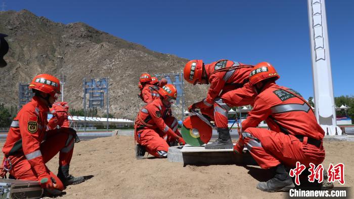 圖為7月4日,西藏森林消防總隊(duì)指戰(zhàn)員學(xué)習(xí)破拆技術(shù)開(kāi)辟救援通道。侯杰 攝